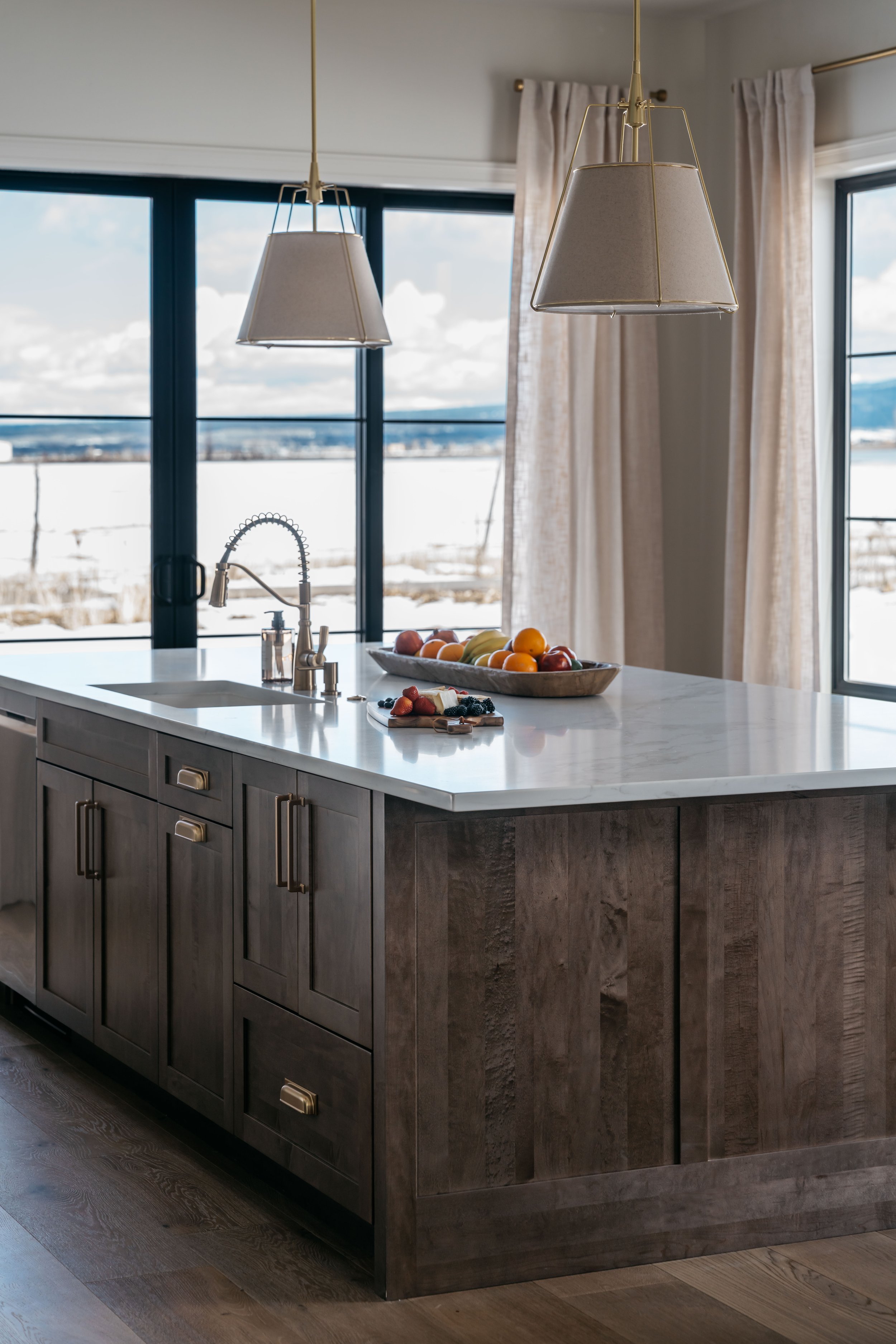 Situated in Driggs, Idaho with sweeping views of the Teton Range, the home embraces a more traditional mountain aesthetic, pairing rich textures, warm wood tones, and layered interiors with a layout designed for gathering and relaxation. Large windows invite the surrounding landscape inside, while thoughtfully designed living spaces create a sense of comfort and ease throughout the home.