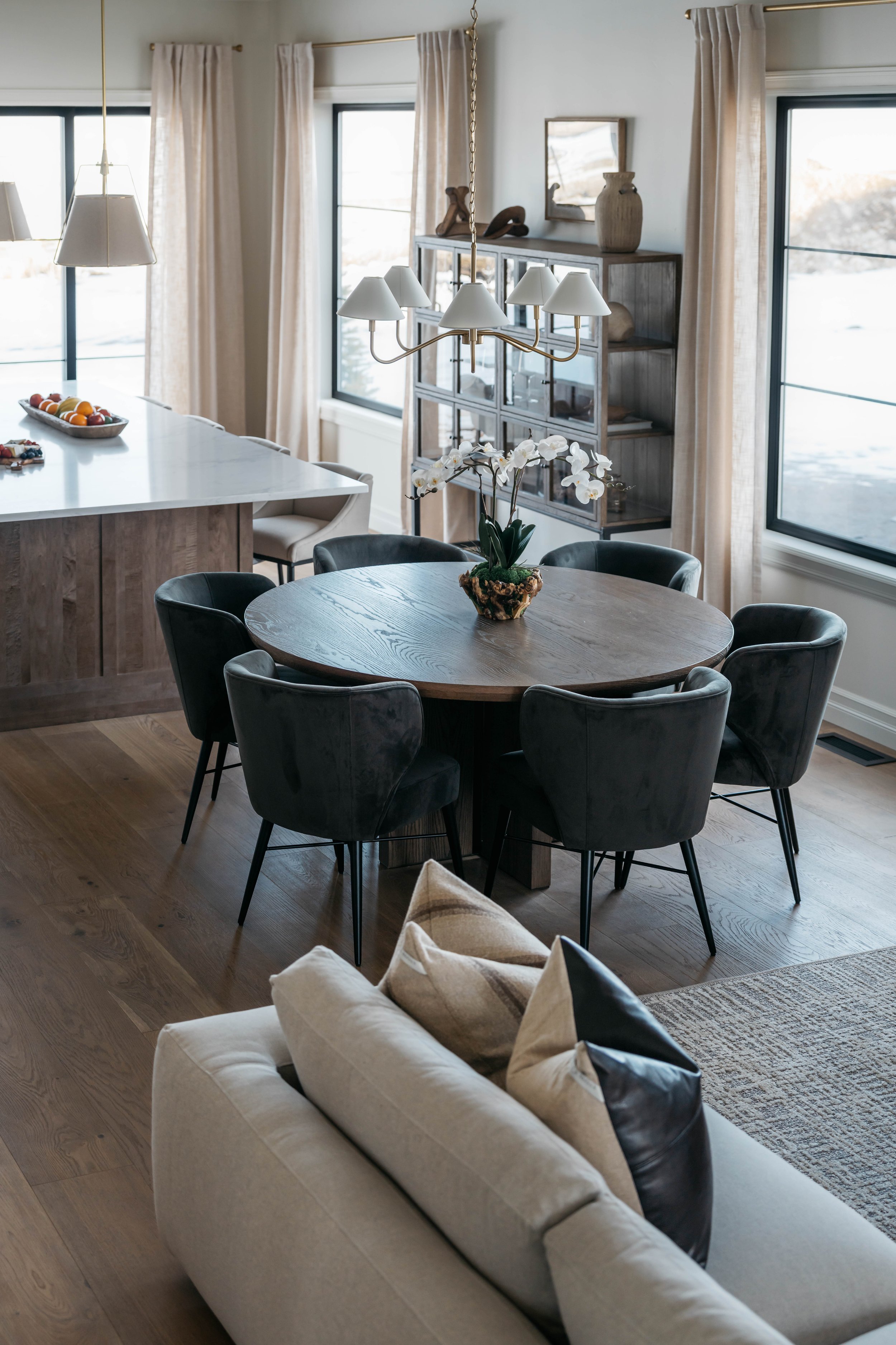 The interiors were thoughtfully designed and furnished by Stella & Sloan by amy leigh, layering warm textures, natural finishes, and comfortable furnishings throughout the home. Each space was curated to create an inviting atmosphere that feels relaxed, cozy, and perfectly suited for gathering after a day in the mountains.